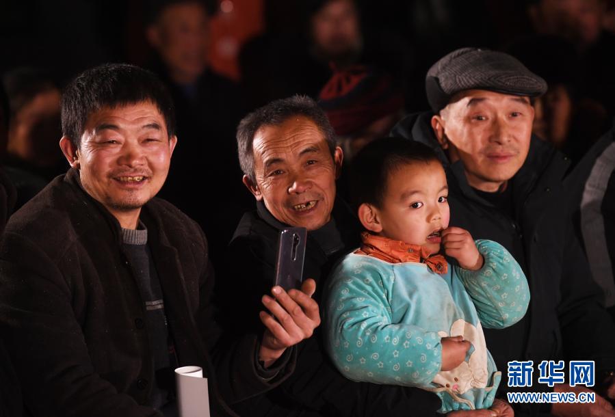 1月6日,毛相林(左二)和下莊村村民們一起觀看由巫山縣文化館組織的慰問(wèn)演出。新華社記者 王全超 攝
