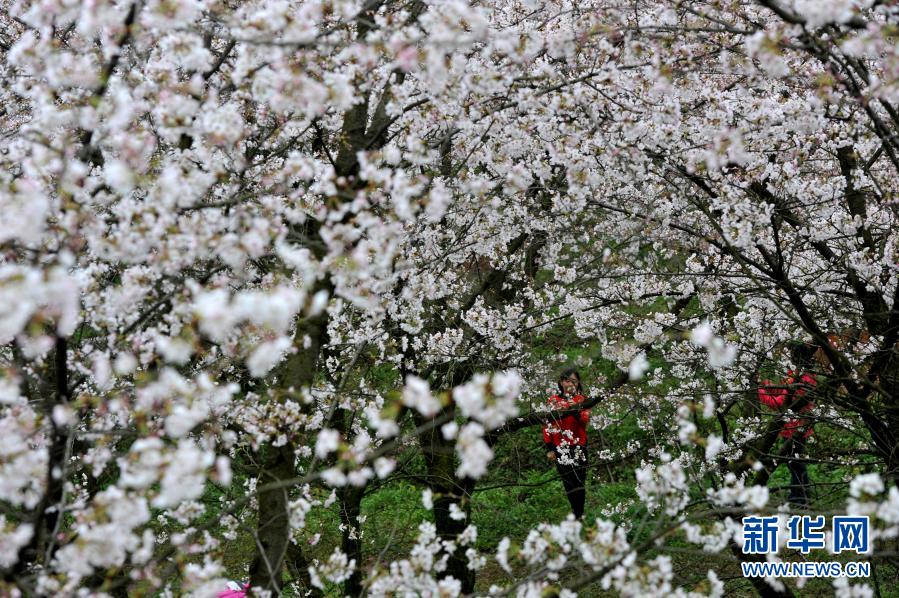 春季里,貴州省貴安新區(qū)紅楓湖畔的櫻花園內(nèi)櫻花綻放,花海如云似雪,吸引游人踏春賞櫻。