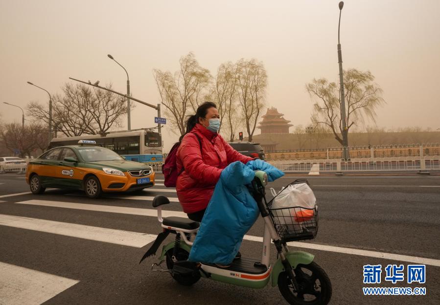 3月15日,市民騎車從北京故宮角樓附近經(jīng)過。當(dāng)日,我國北方多地出現(xiàn)沙塵天氣。新華社記者 陳曄華 攝