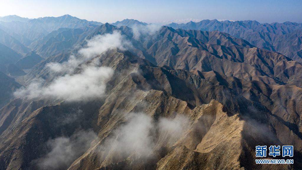 這是黃河黑山峽河段沿線的山巒(4月5日攝,無人機照片)。