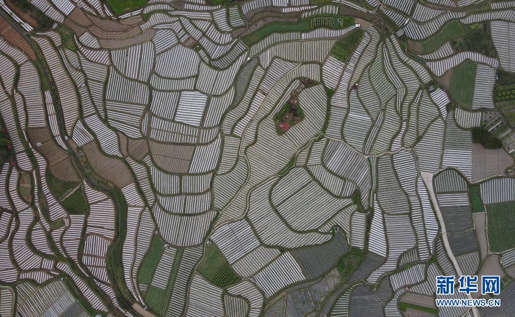 4月5日在貴州省遵義市余慶縣白泥鎮(zhèn)團(tuán)結(jié)村烏楊大壩現(xiàn)代農(nóng)業(yè)蔬菜種植示范區(qū)拍攝的田園風(fēng)光(無人機(jī)照片)。