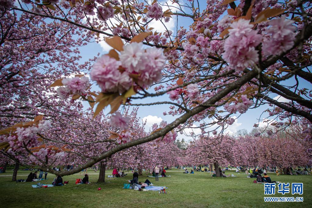 4月20日,人們?cè)诜▏?guó)巴黎近郊的國(guó)璽公園欣賞櫻花。