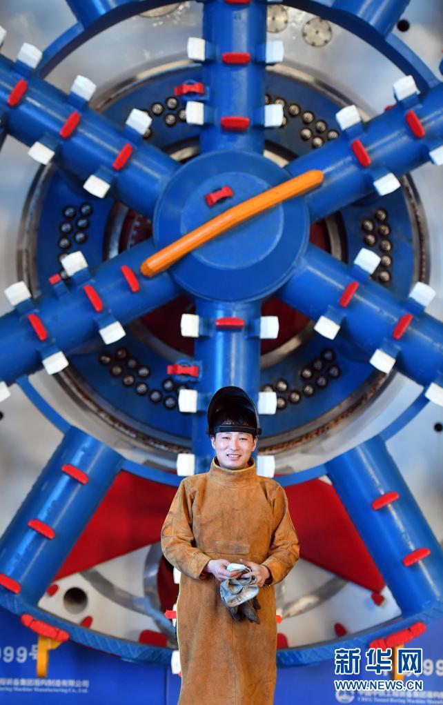 王安永在中鐵工程裝備集團(tuán)車間與盾構(gòu)機合影(4月23日攝)。