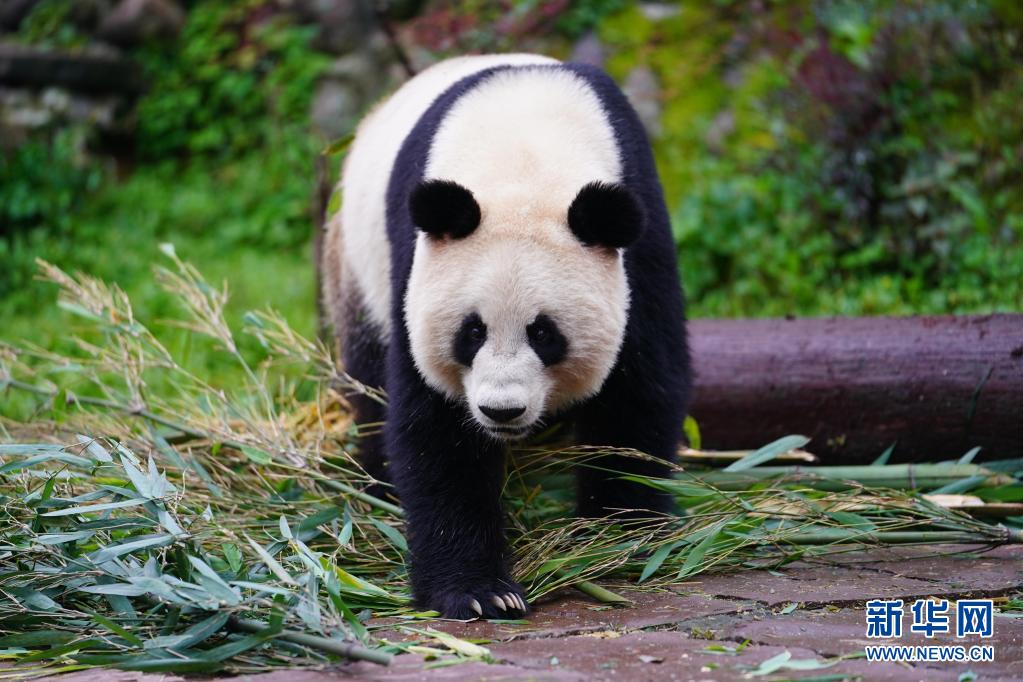 這是5月15日在中國(guó)大熊貓保護(hù)研究中心雅安碧峰峽基地拍攝的大熊貓。
