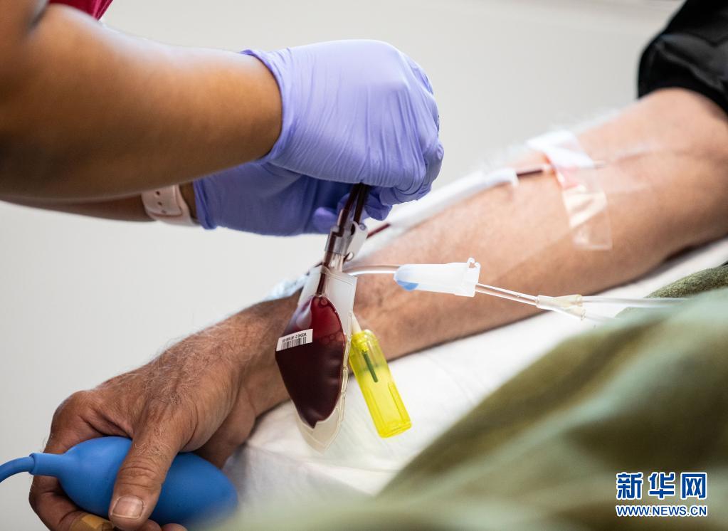 6月14日,在美國(guó)芝加哥,一名獻(xiàn)血志愿者在大芝加哥地區(qū)紅十字會(huì)一獻(xiàn)血站內(nèi)獻(xiàn)血。新華社發(fā)(喬爾·萊納攝)