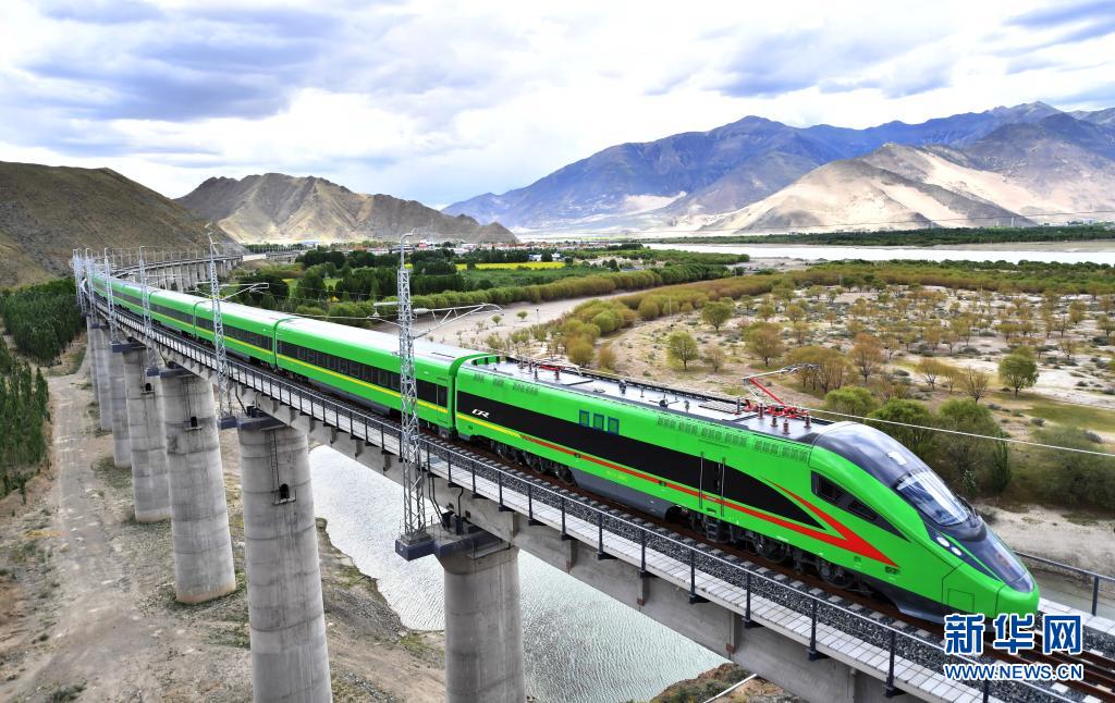 試運行的復興號列車行駛在西藏山南市境內(nèi)(6月16日攝)。