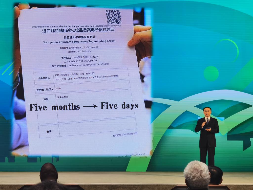 2021年6月16日,在“中國共產(chǎn)黨的故事——習(xí)近平新時代中國特色社會主義思想在上海的實踐”特別對話會上,中國(上海)自由貿(mào)易試驗區(qū)管委會政策研究局副局長鄭海鰲進行講述。 新華社記者 吳宇 攝