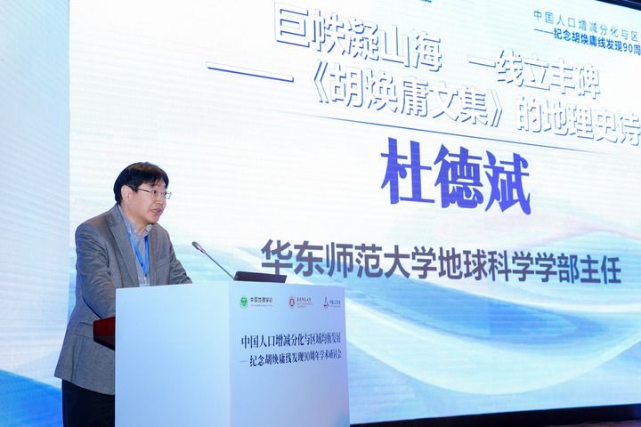 11月29日,杜德斌在纪念胡焕庸线发现90周年学术研讨会发言。