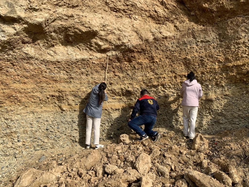 2020年,“中国郧阳恐龙蛋研究中心”在青龙山恐龙蛋化石群国家级自然保护区成立,多家机构在此开展联合科研攻关。随着勘探深入,技术人员在遗址更高处山体发现大规模卵石层,这些卵石磨圆性佳、呈定向排列,属典型古河流阶地沉积物。