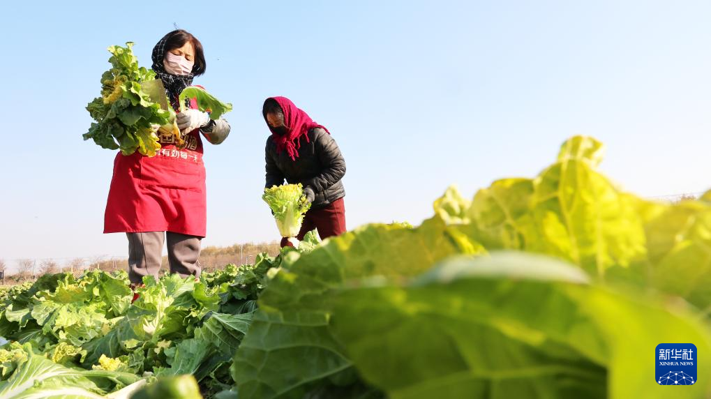 12月4日,在江苏省连云港市海州区新坝镇沙杭村,村民采收大白菜。