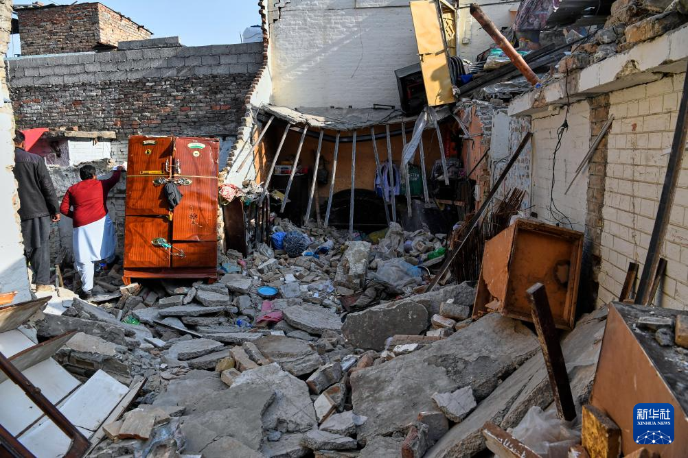 1月11日,在巴基斯坦首都伊斯兰堡,工作人员查看煤气罐爆炸事故现场。新华社/美联