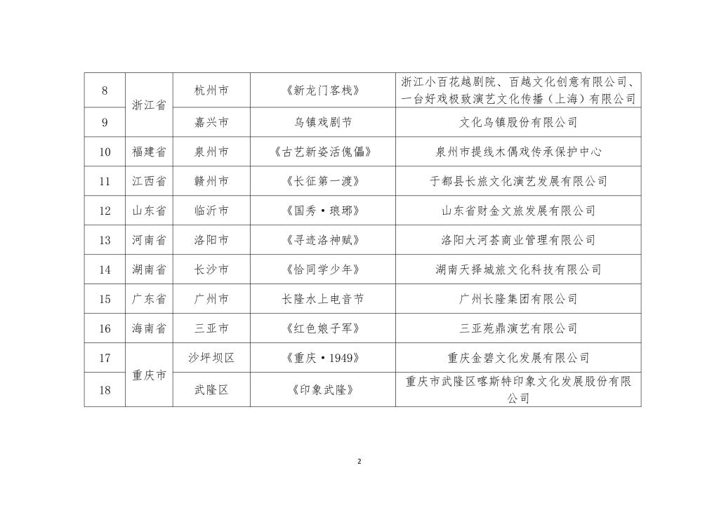 据介绍,文化和旅游部在各省级文化和旅游行政部门、有关中央企业推荐申报项目的基础上,经专家评审等程序,按照思想内涵深刻、艺术表现精湛、业态模式创新、市场反响良好、运营管理有效、带动消费作用明显、社会效益和经济效益显著的标准,确定了这些项目。