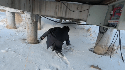 我们随民警赶到的时候,女孩正站在雪地里哭。她刚上车发现手机没了,折回来找了好久也没找着。民警孙志鑫问了丢失的位置,没有半点犹豫就跳到桥下找。记者紧随其后,腿陷进雪里,拔了半天才拔出来。