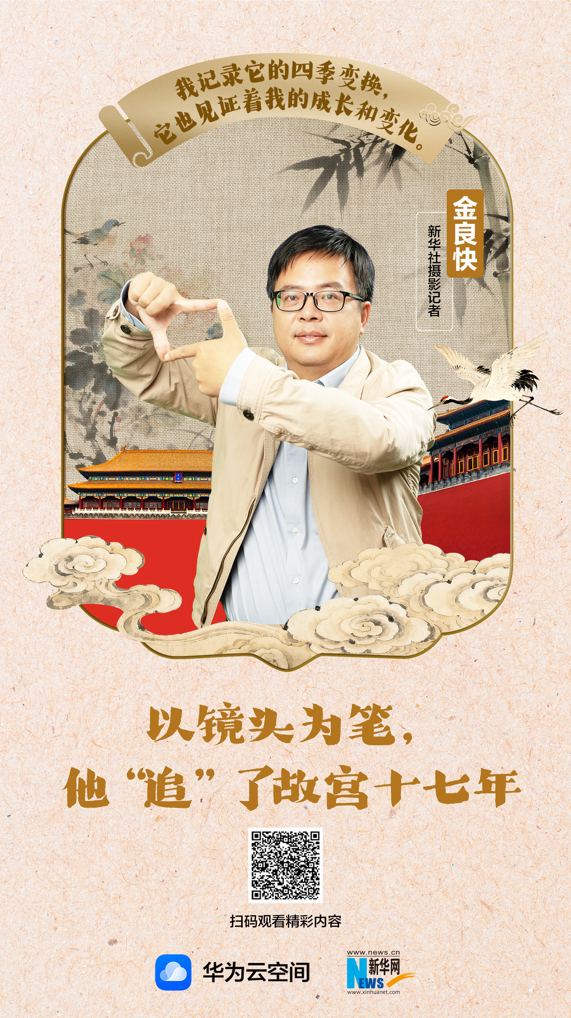 “2008年我拍到北京奥运会焰火大脚印在角楼上空绽放,这其实是一个很偶然的事件……那是我作为图片编辑发出的第一张跟故宫相关的照片,从那之后,我跟故宫的缘分就这么结下了,一晃17年。”新华社摄影记者金良快回忆与故宫的初遇,话语里满是珍视。17年间,他从图片编辑转为跑口故宫的摄影记者,拍摄故宫相关原片超10万张,用新闻摄影为故宫留下了一份“时光相册”。