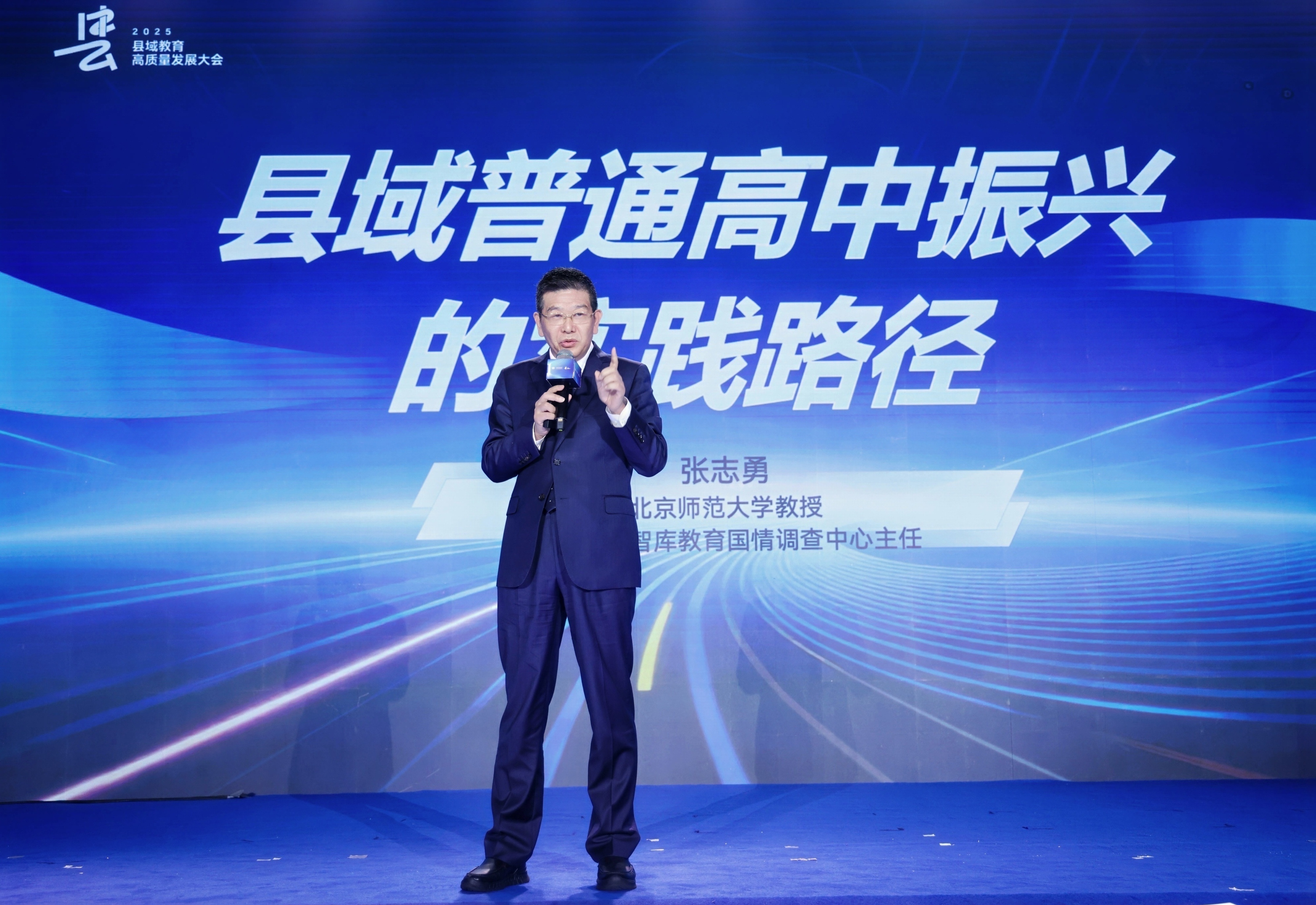在12月5日举行的2025县域教育高质量发展大会上,北京师范大学教授、国家高端智库教育国情调查中心主任张志勇作《县域普通高中振兴的实践路径》主题报告。
