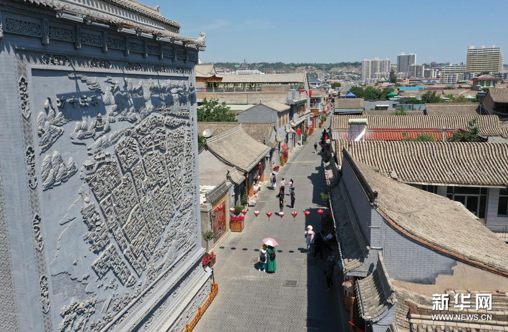 7月8日,游客在臨夏市八坊十三巷游覽(無(wú)人機(jī)照片)。新華社發(fā)(史有東 攝)
