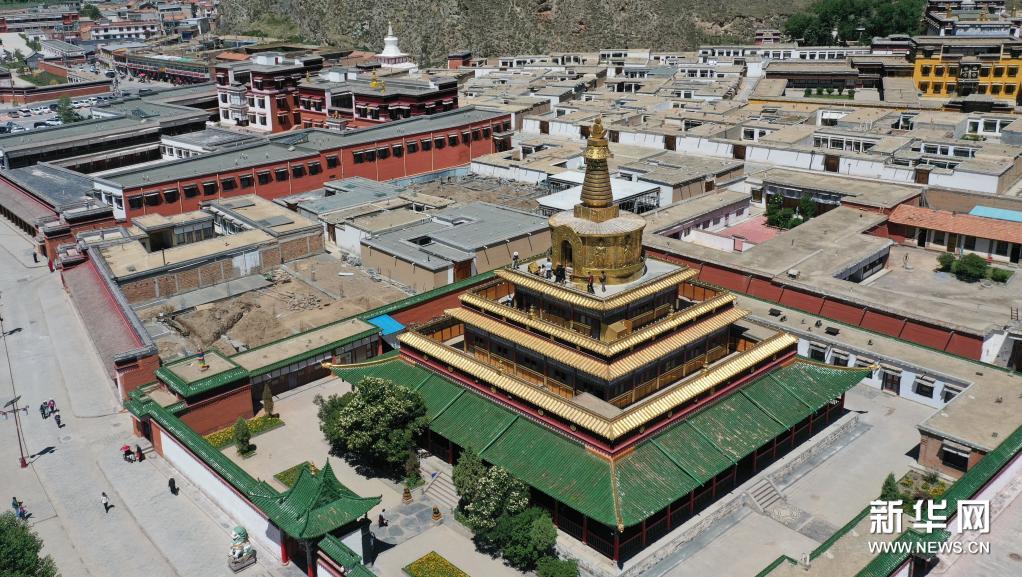 這是7月12日拍攝的拉卜楞寺貢唐寶塔(無人機(jī)照片)。新華社記者 陳斌 攝