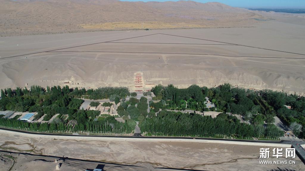 這是敦煌莫高窟(7月6日攝,無人機(jī)照片)。新華社記者 劉詩(shī)平 攝
