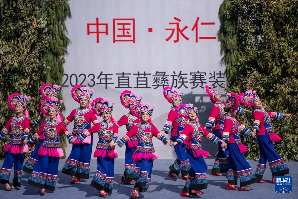 每年农历正月十五,云南省楚雄彝族自治州永仁县中和镇直苴村群众都会自发组织一场盛大的彝族赛装节,身着民族盛装的村民赛装比美、跳脚狂欢。据介绍,这一习俗已传承了1300多年,被誉为古老的“乡村T台秀”。
