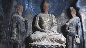 3月14日晚,演员在大型室内情景体验剧《又见敦煌》中表演。