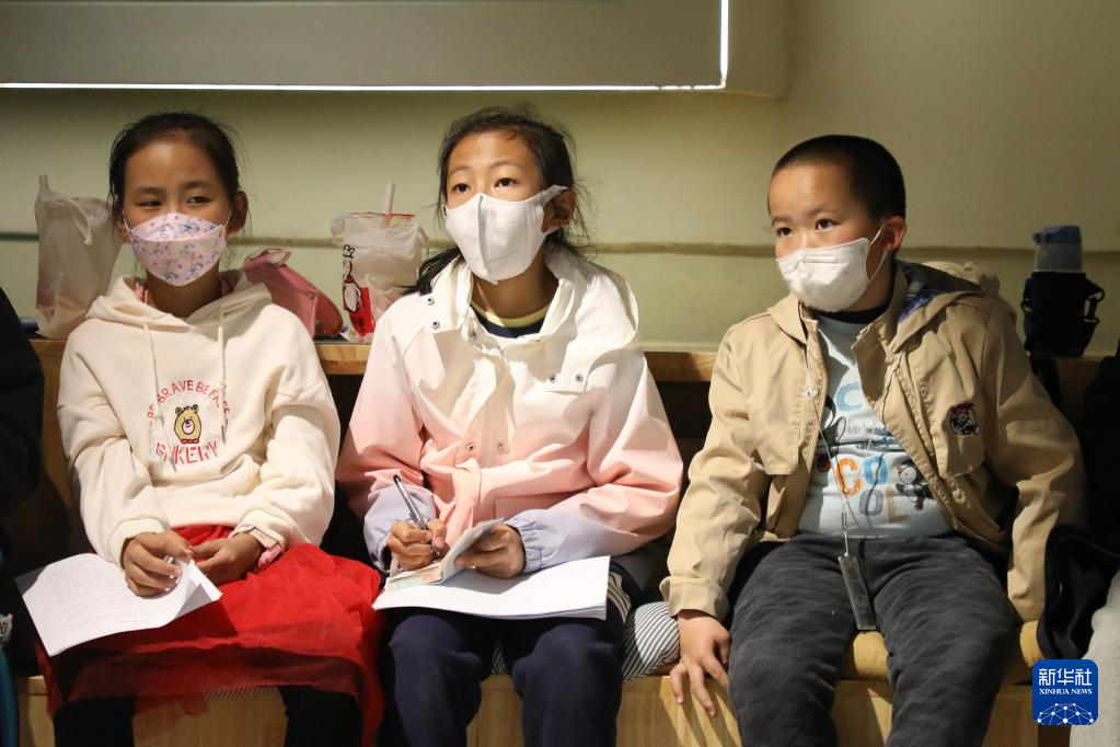4月1日,在甘肃省兰州市的读者出版集团数字阅读中心读者小站,小朋友聆听老师的阅读分享。