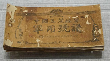 福建宁化县革命纪念馆的珍贵文物《中国工农红军军用号谱》亮相展览(4月17日摄)。