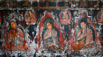 5月26日拍摄的皮央石窟壁画局部。