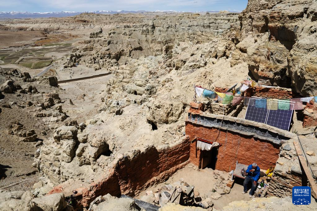 仁增旺扎老人居住的东嘎村皮央组就在石窟群所在的小山脚下(5月26日摄)。