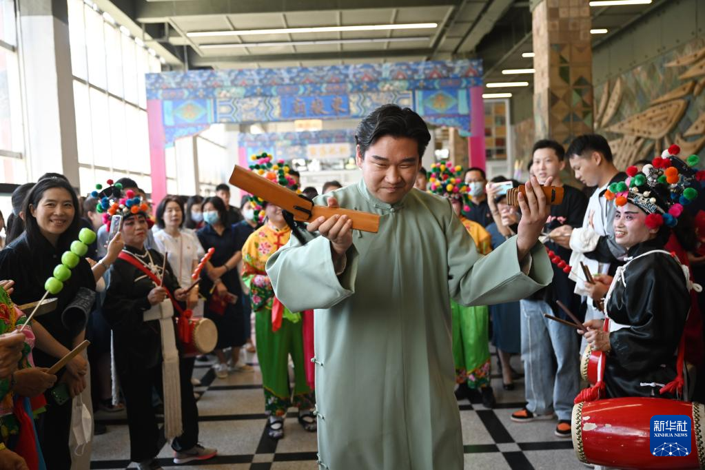 6月14日,观众与演员在北京市朝阳区文化馆共同表演。