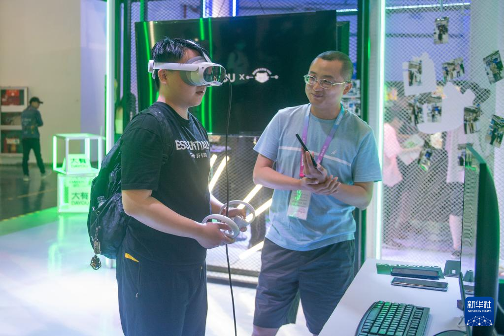6月20日,观众在第十九届中国国际动漫节产业博览会上体验虚拟现实产品。