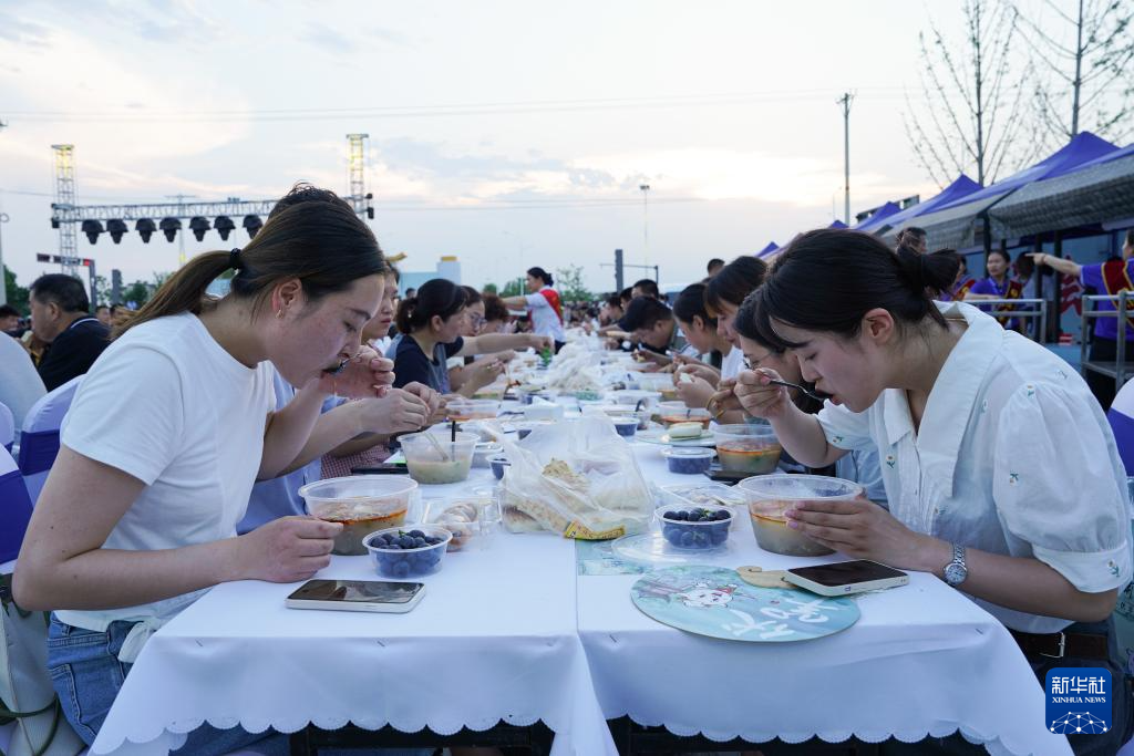 当日是初伏首日,在安徽省宿州市萧县,一场“千人喝羊汤”活动在当地水墨圣泉古镇广场举行。萧县素有入伏吃羊肉、喝羊汤的习俗,并形成独具特色的伏羊节。