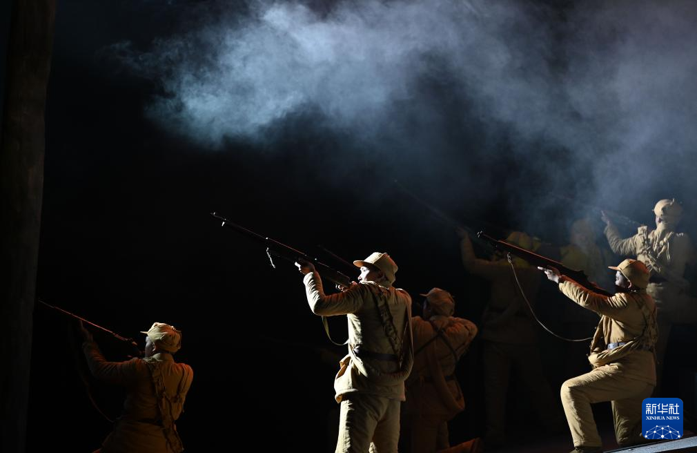 7月19日,演员在话剧《一条大河波浪宽》中表演。