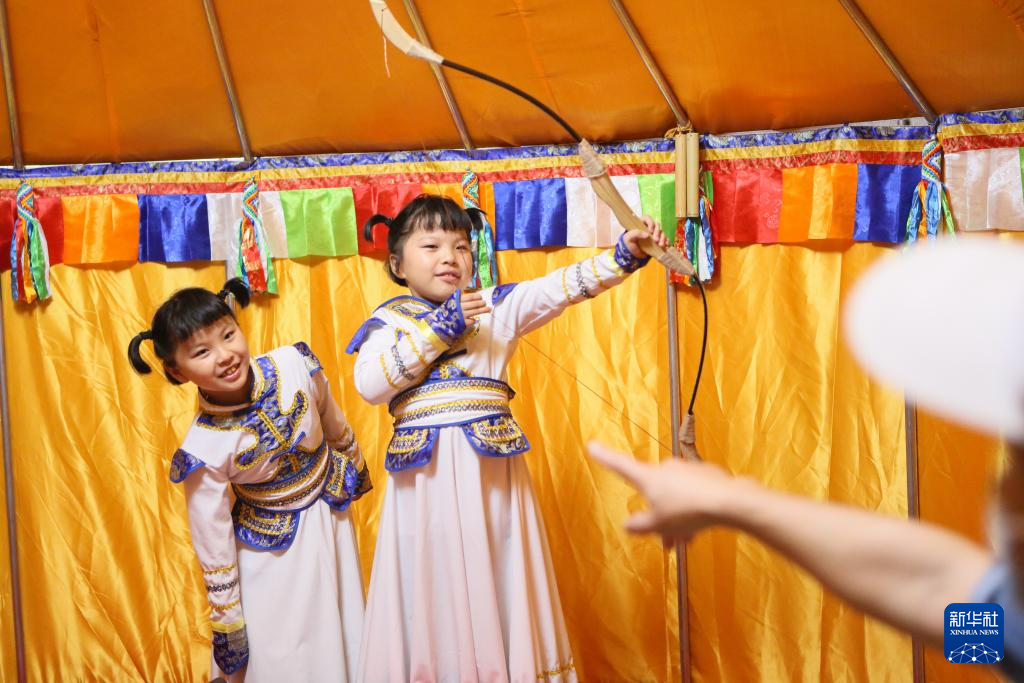 当日,为配合“漠北锋鸣——鄂尔多斯青铜器文物精品展”,助力城市夜经济发展,上海市闵行区博物馆开展夜间“那达慕”大会。参观者可以体验射箭、拔河,品尝特色美食,充分感受民俗风情的魅力。