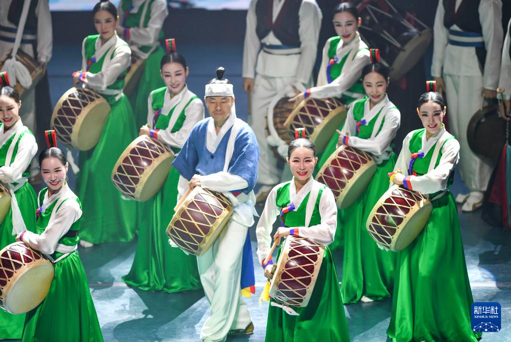 韩国釜山市立舞蹈团演员为观众表演节目《畅享Korea》(7月31日摄)。新华社记者 胡虎虎 摄