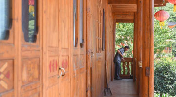 舍米湖村村民为游客表演后准备回家(8月18日摄)。