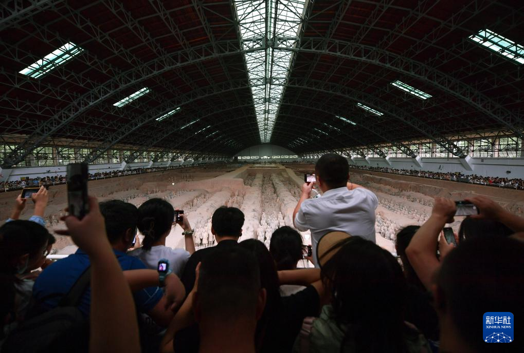 暑期将尽,但位于陕西西安临潼区的秦始皇兵马俑博物馆旅游热度不减,前来参观的游客摩肩接踵。