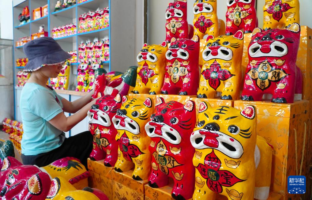 近年来,山东省高密市姜庄镇以非遗代表性传承人为引领,以非遗工坊为基础,发展传统泥塑产业。目前该镇每年可加工泥老虎40多万个,产品销往全国各地,有力拓宽了当地群众增收道路。泥老虎是高密市姜庄镇聂家庄泥塑的代表品种之一,2008年聂家庄泥塑被列为国家级非物质文化遗产。