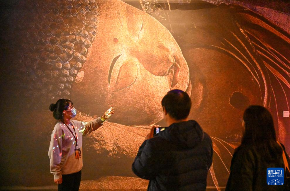 11月28日,观众在天津数字艺术博物馆内参观“发现敦煌——敦煌艺术情景式特展”。