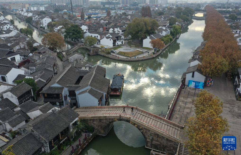 古运河畔的清名桥历史文化街区晨景(无人机照片,12月9日摄)。