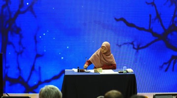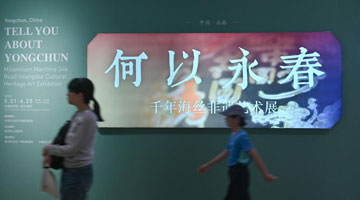 6月1日,一名男孩站在美国加利福尼亚州阿拉米达县的一处沙雕作品前。