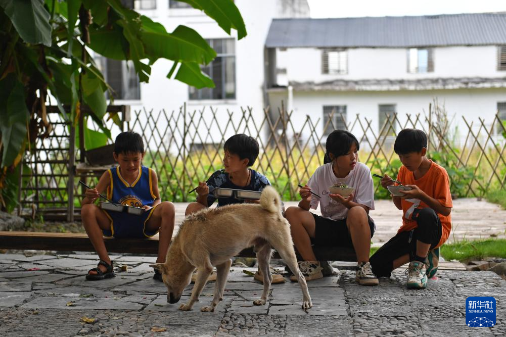8月24日,大元社的孩子们和老师在晚饭后玩耍。