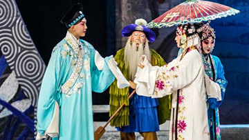 8月29日,京剧演员在吉林市人民大剧院表演京剧《白蛇传》选段。