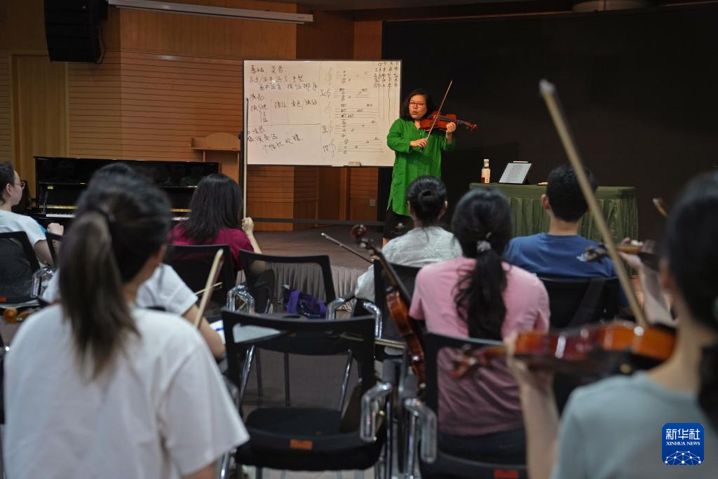 9月2日晚,在上海市群众艺术馆,夜校学员在小提琴提高班上课。