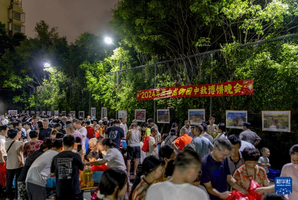 9月14日,在福建厦门一小区内,老少居民一起参加博饼活动。