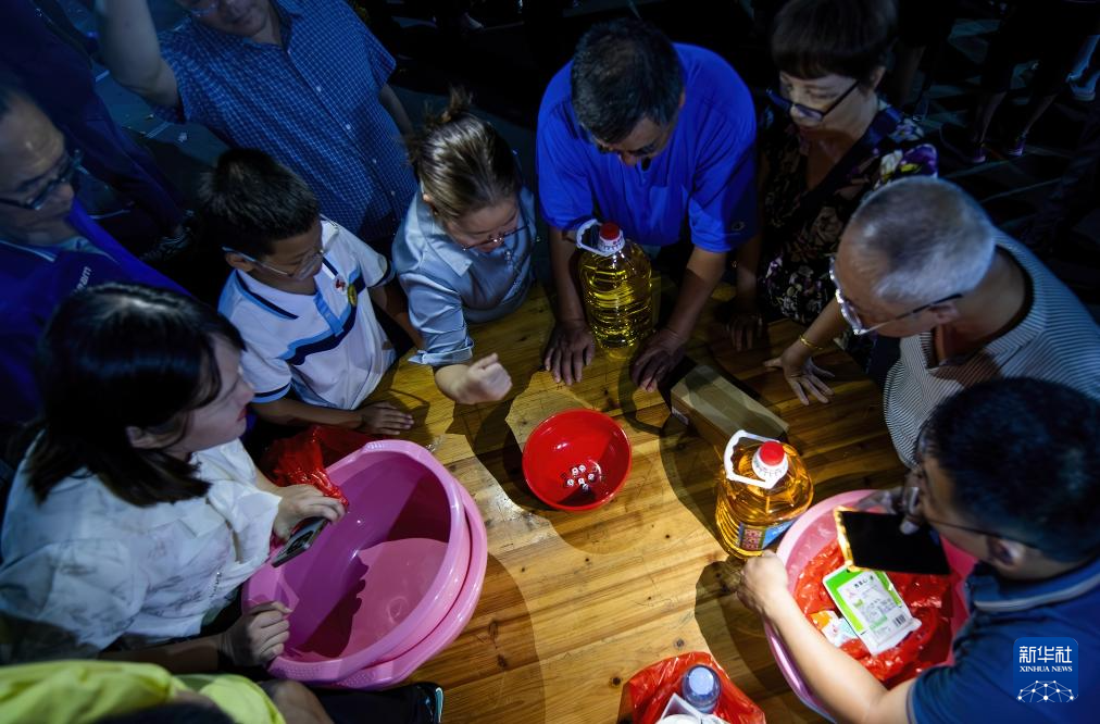 9月14日,在福建厦门一小区内,居民一起参加博饼比赛。