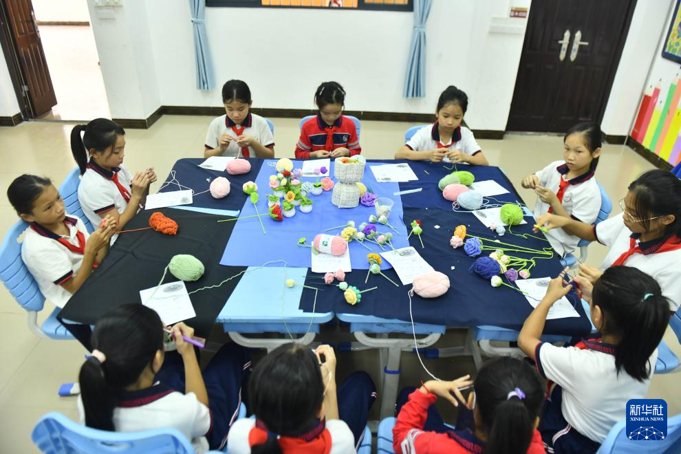 近年来,广西梧州市长洲区凤翔小学在民族团结进步创建工作中,将手工编织、漆扇等传统文化引进课堂,让孩子们在丰富多彩的活动中,传承非遗文化。