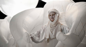 10月11日,在四川省丹巴县县城,一名身着藏族刺绣传统服装的妇女参加当地活动。