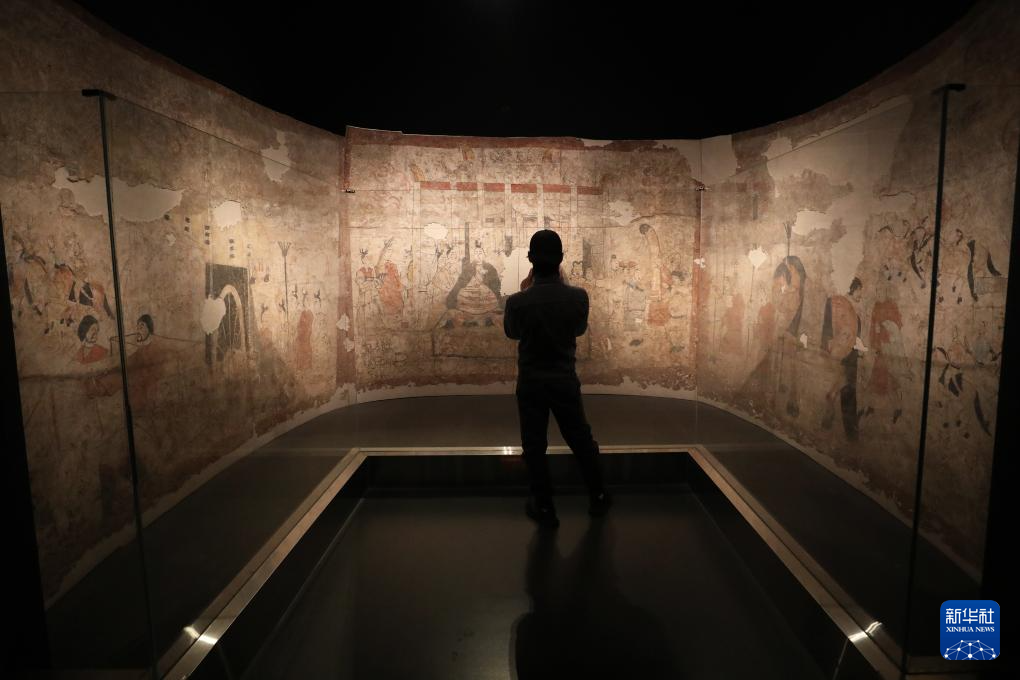 10月29日,观众在太原北齐壁画博物馆体验互动项目。