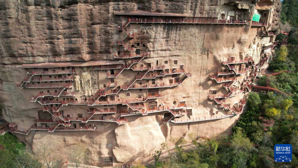 这是11月2日拍摄的麦积山石窟(无人机照片)。
