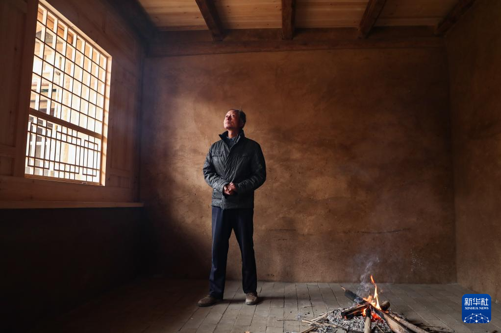 11月18日,在甘肃省陇南市宕昌县哈达铺镇上街村,村民在检查被列为县级文物保护单位、已得到修缮的自家祖宅。